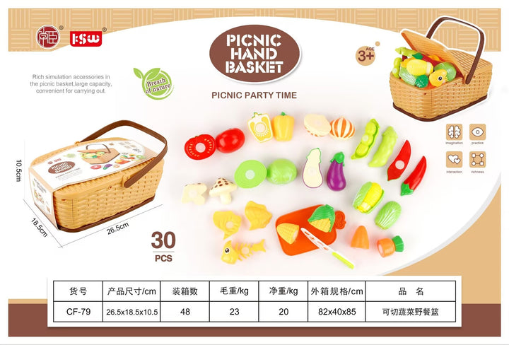 Canasta de Picnic Infantil 30 Piezas – Frutas y Verduras