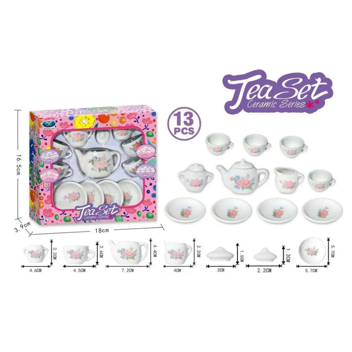 Con 13 piezas de cerámica decoradas con flores, las pequeñas podrán preparar su propia hora del té con amigos, muñecas o familiares, estimulando su imaginación y habilidades sociales.