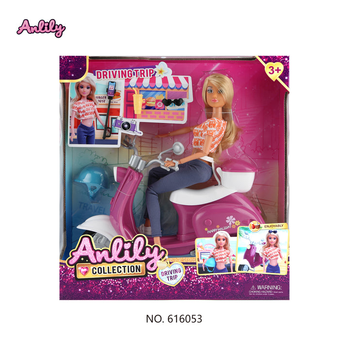 Muñeca Anlily con Moto Scooter – Driving Trip Importada
