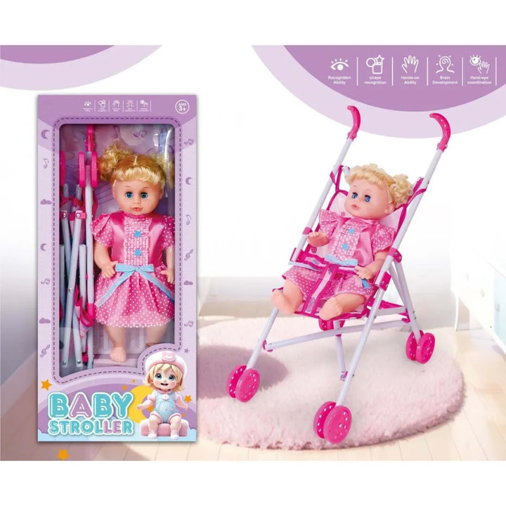 La Muñeca con Coche Baby Stroller OL1582 es el regalo ideal para niñas que adoran cuidar, pasear y jugar como verdaderas mamás.