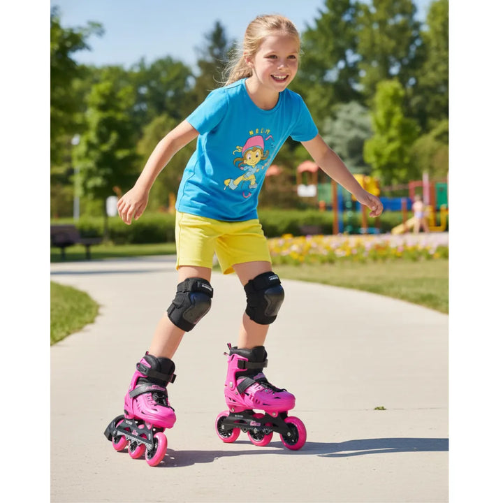 Su diseño resistente y sus ruedas de alto rendimiento ofrecen estabilidad y suavidad en cada desliz. Perfectos para aprender, mejorar o simplemente disfrutar. Además, se ajustan bien al pie, lo que te da tranquilidad mientras ella vive la emoción de patinar.
