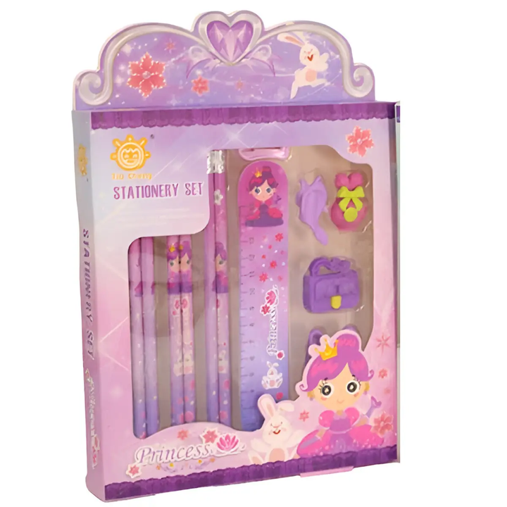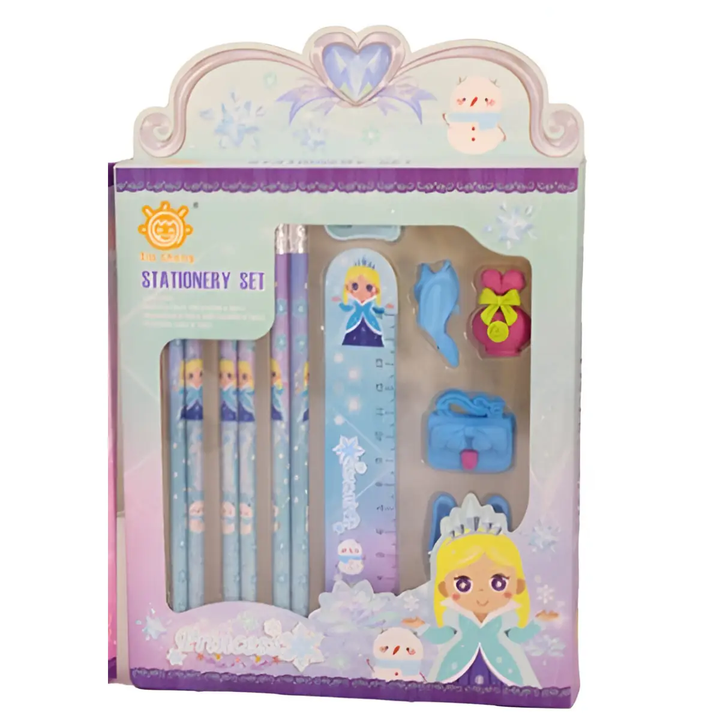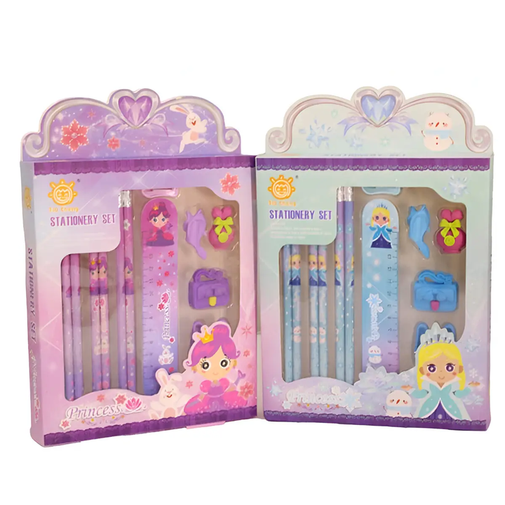 "¡Dale un toque real a su escritorio! 👑✨ Este set de papelería incluye lápices, regla, sacapuntas y borradores con temática de princesa. Ideal para que los niños desarrollen su creatividad mientras se divierten con sus útiles escolares. ¡Perfecto para pequeños soñadores que adoran las historias de fantasía!"