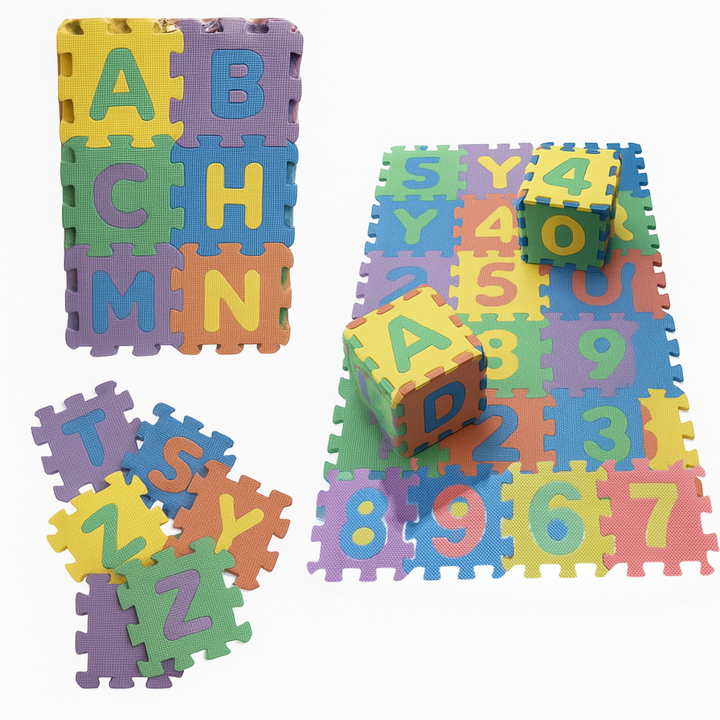 Divertido y educativo set de tapetes encajables fabricados en goma eva suave y resistente, ideal para que los niños aprendan el abecedario y los números mientras juegan. Incluye piezas de colores vibrantes con letras y números removibles, que pueden usarse para formar palabras, armar cubos o crear una superficie segura para jugar. Perfecto para estimular la coordinación motriz, el reconocimiento de colores y la memoria. Fácil de limpiar y almacenar.